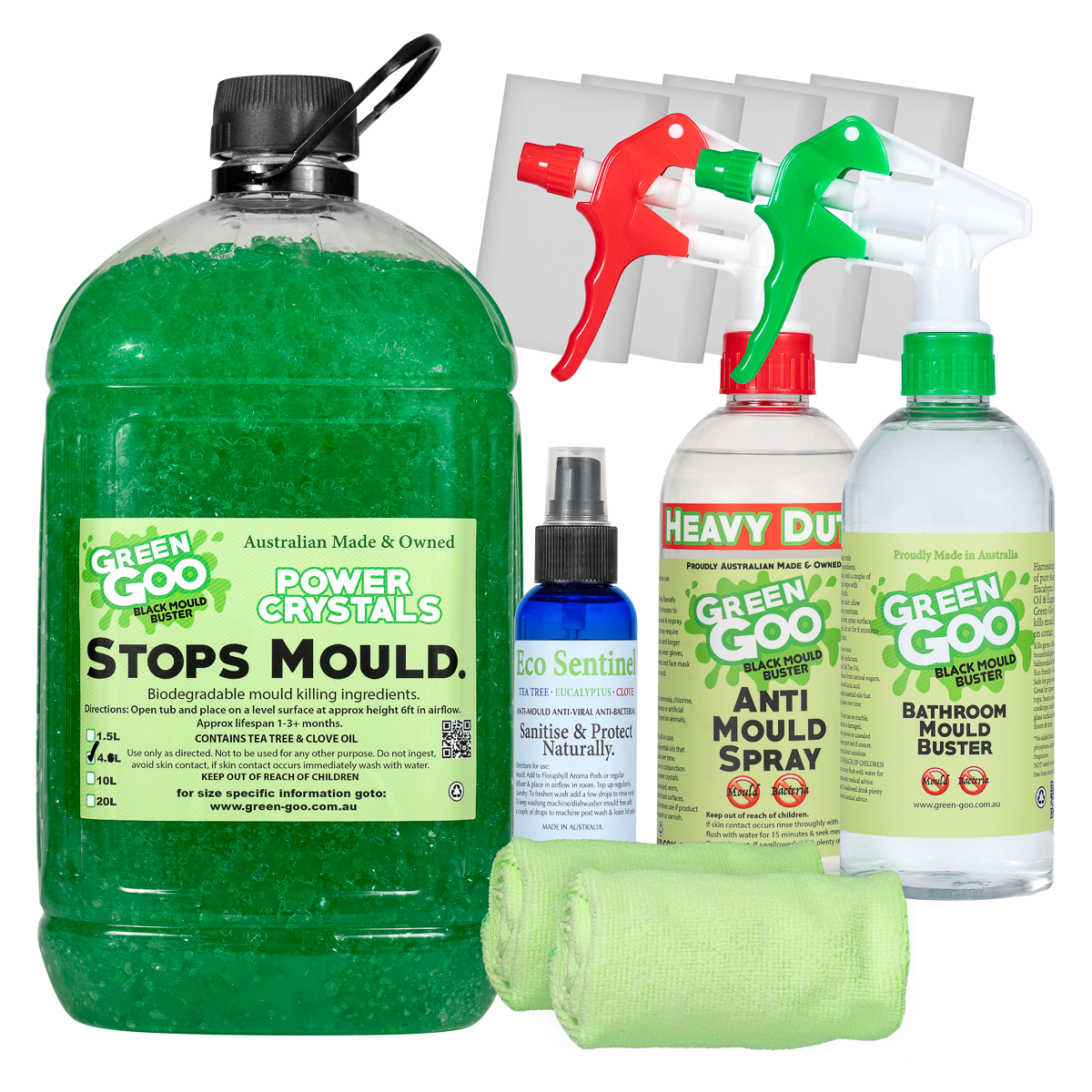 AWESOME VALUE MOULD DESTROYER BUNDLE! The Green-Goo HEAVY DUTY anti mould spray and bonus microfibre cloths make light work of r...
